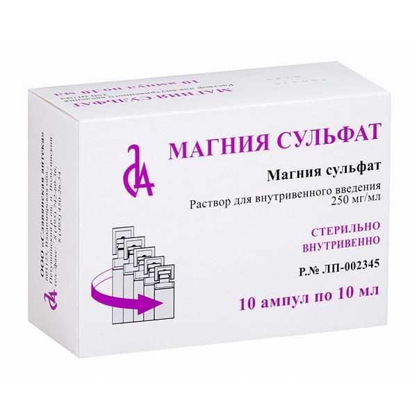 Магния сульфат раствор для в/в введ. 250мг/мл 10мл 10 шт.
