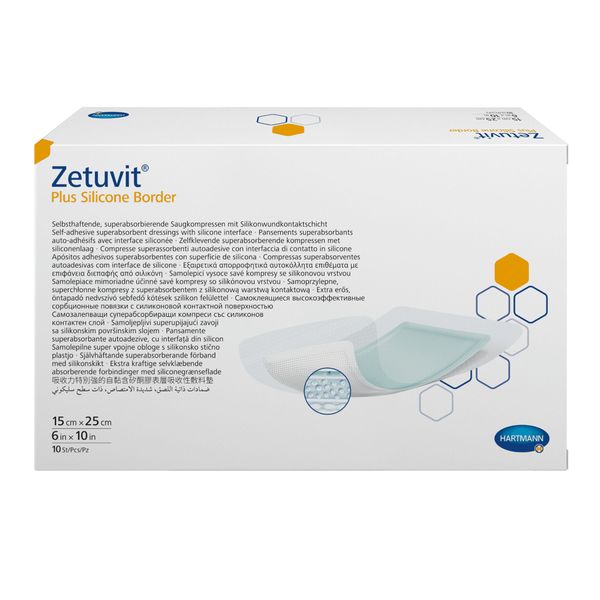 Повязка суперабсорбирующая с контактным слоем из силикона самоклеящаяся Silicone Border Plus Zetuvit/Цетувит 15х25см 10шт