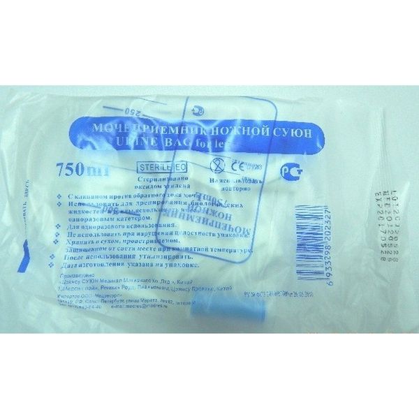 Мочеприемник ножной стерильный со спускным краном-трубка Apexmed/Апексмед 50см 750мл
