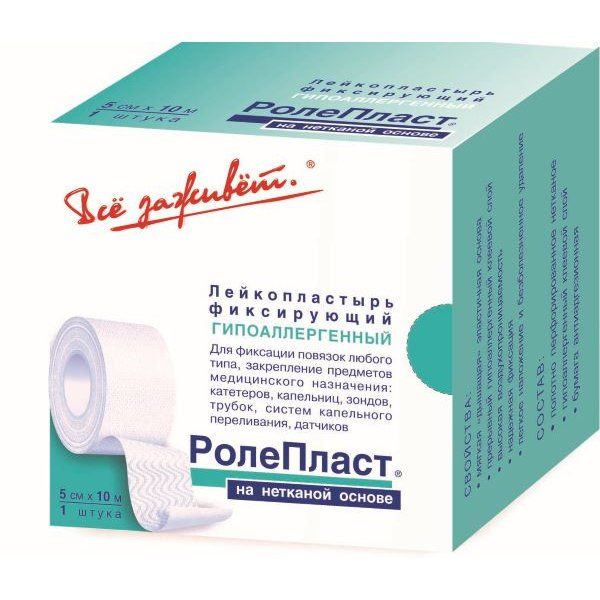 Лейкопластырь фиксирующий нестерильный на нетканой основе Ролепласт 5х1000см