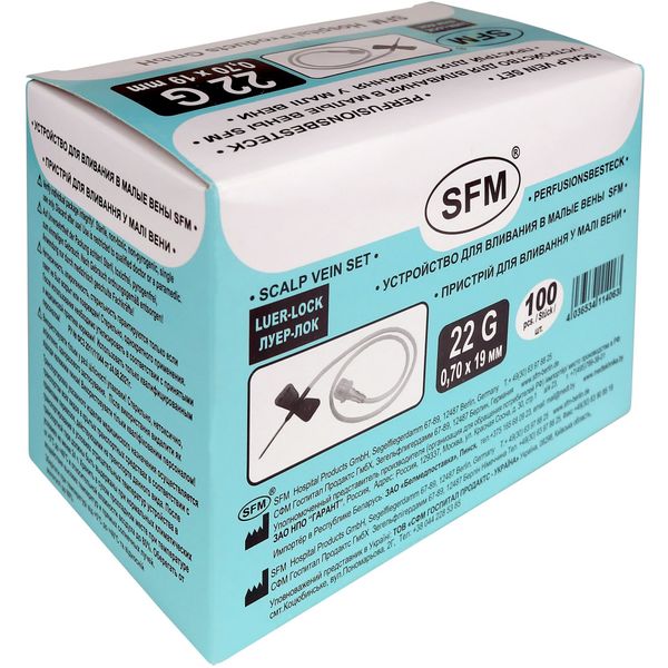 Катетер для вливания в малые вены игла-бабочка стерильный 22G SFM 0,7х19мм 100шт