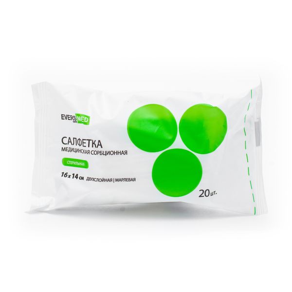 Салфетка медицинская марлевая сорбционная стерильная двухслойная EversMed/ЭверсМед 16см х 14см 20шт