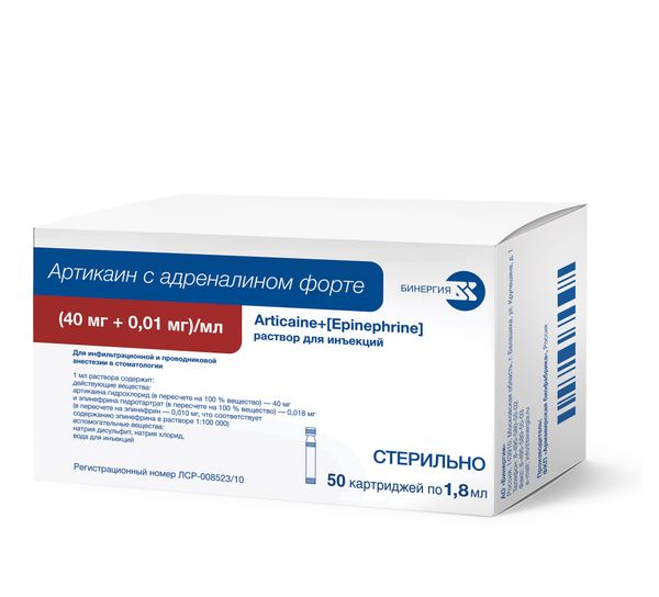 Артикаин с адреналином форте р-р д/ин. 40мг/мл+0,01мг/мл картридж 1,8мл №50