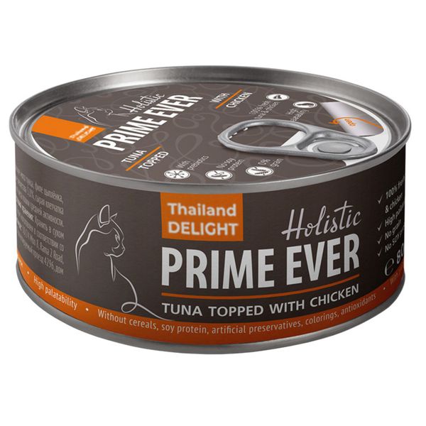 Корм влажный для кошек тунец с цыпленком в желе Prime Ever 5B жестяная банка 80г