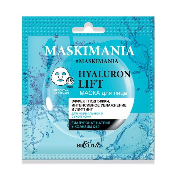 Маска для лица Эффект подтяжки, интенсивное увлажнение и лифтинг Hyaluron Lift Maskimania Белита