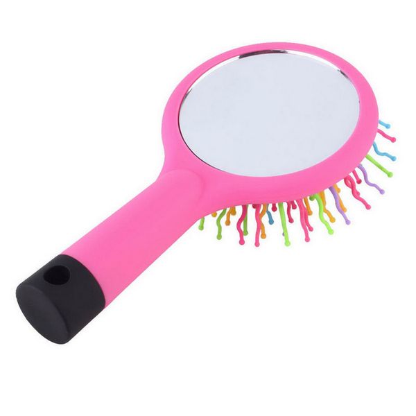 Щетка для волос с зеркалом и цветными зубчиками круглая Ригла