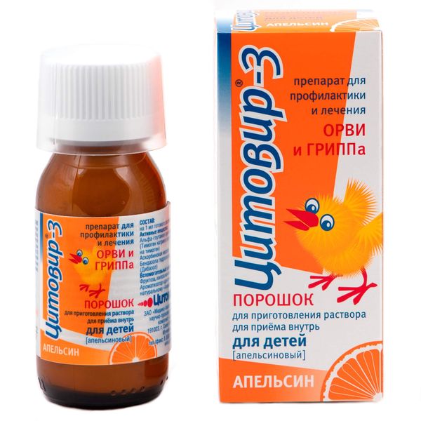 Цитовир-3 апельсин для детей порошок для приг. раствора для приема вн. 20г