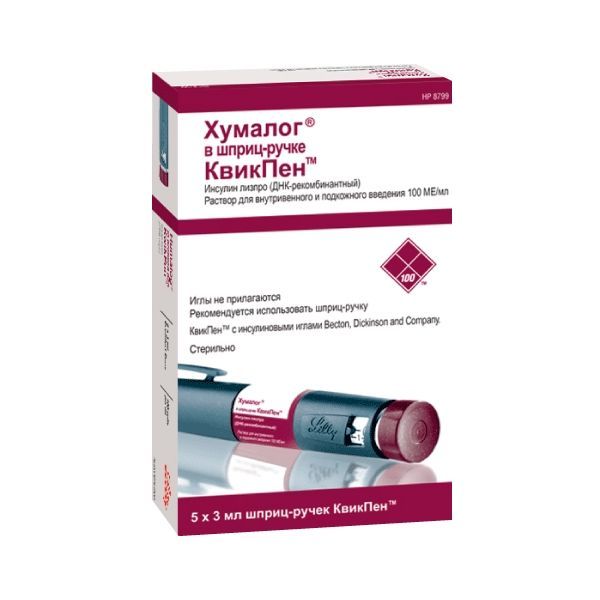 Хумалог раствор для в/в и п/к введ. картридж со шприц-ручкой КвикПен 100МЕ/мл 3мл 5шт