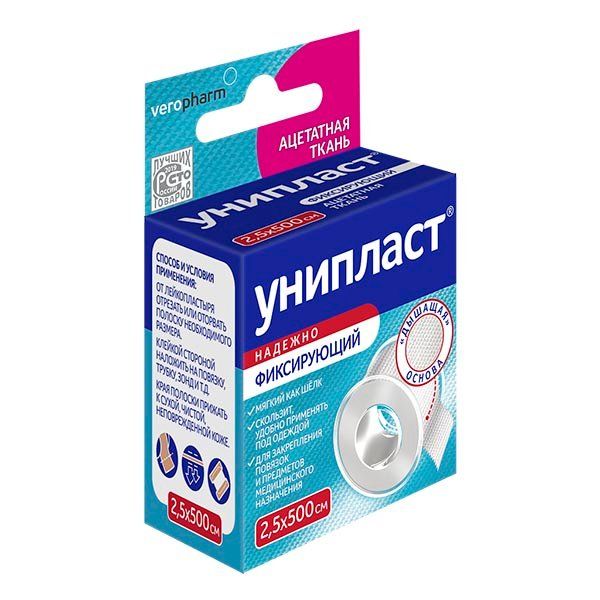 Лейкопластырь фиксирующий на основе шелка Унипласт 2,5см х 500см