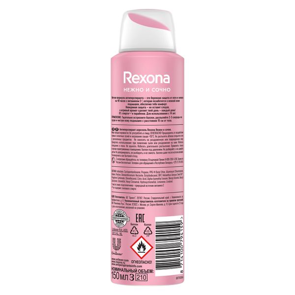 Дезодорант-антиперспирант аэрозоль нежно и сочно Rexona/Рексона 150мл