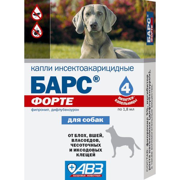 Барс форте капли от блох и клещей для собак пипетки 1,8мл 4шт