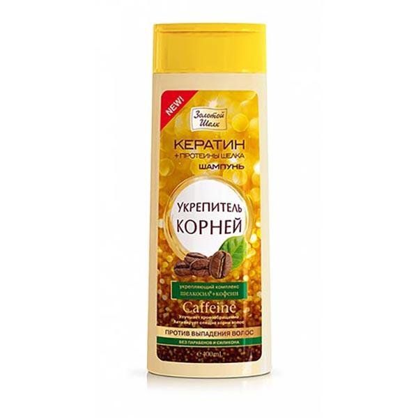 Шампунь Золотой шелк Укрепитель корней с кофеином против выпадения волос 400 мл