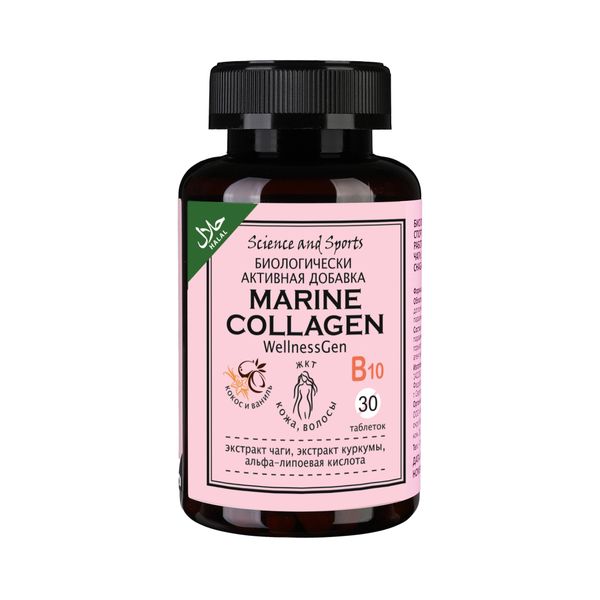 Красивая кожа и волосы кокос с ванилью с альфа-липоевой кислотой, В10, экстрактом чаги и куркумы Science and Sports таблетки 30шт