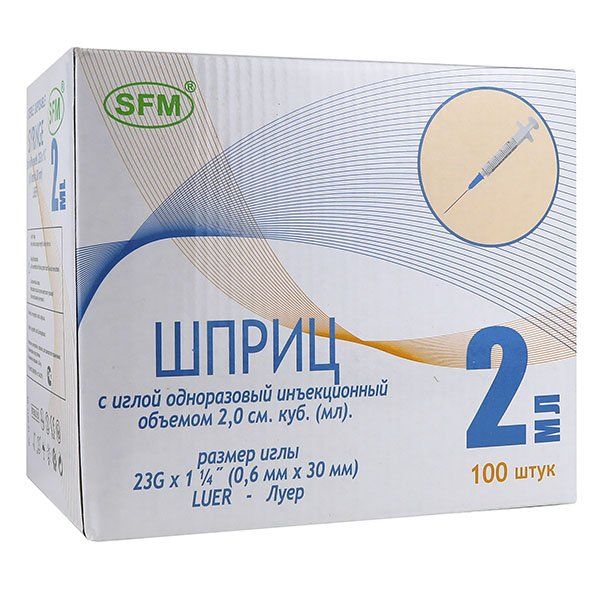 Шприц SFM Hospital (СФМ Госпиталь) 2-х компонентный 2 мл 0,6x30 мм 100шт