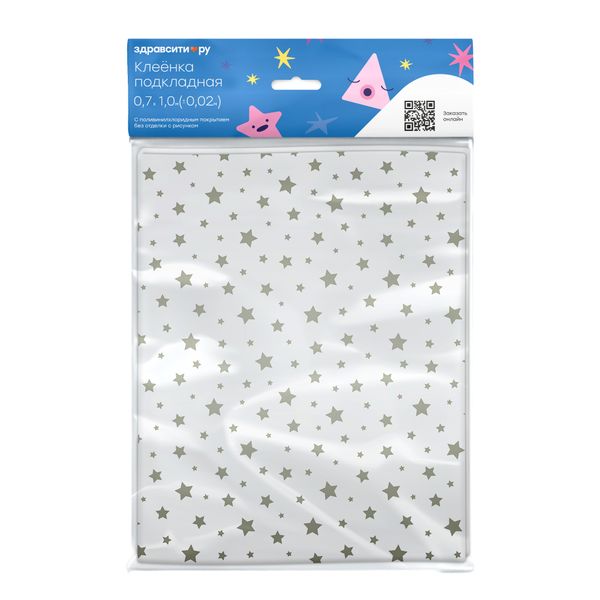 Клеенка подкладная детская с рисунком серые звезды с покрытием ПВХ Zdravcity/Здравсити 0,7х1м
