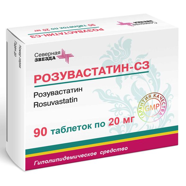 Розувастатин-СЗ таблетки п/о плен. 20мг 90шт