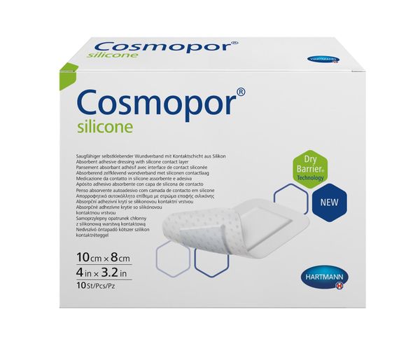 Повязка стерильная пластырного типа с контактным слоем Cosmopor Silicone/Космопор Силикон 10х8см 10шт
