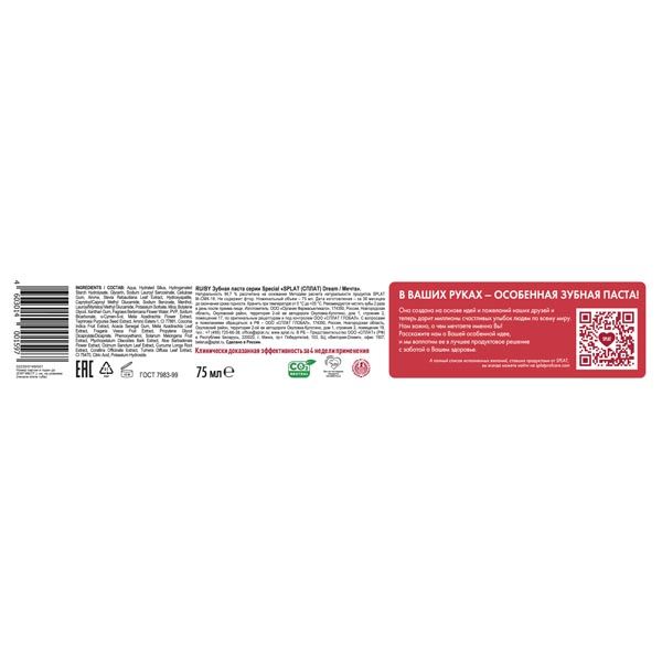 Паста зубная специальная Dream Splat/Сплат 75мл