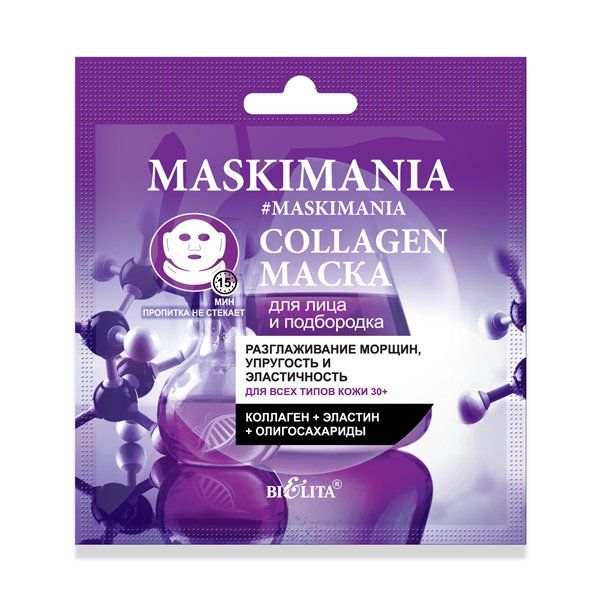 Маска д/лица и подбородка Разглаживание морщин, упругость и эластичность Collagen Maskimania Белита