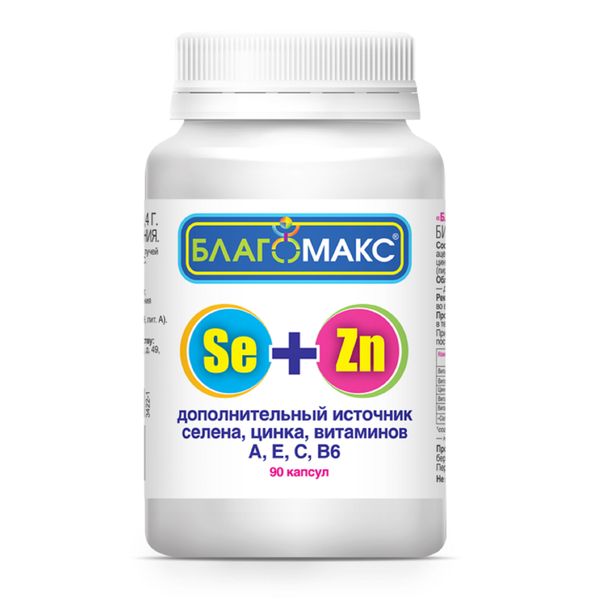 Селен и цинк с витаминами А,Е,С,В6 Благомакс капсулы 400мг 90шт