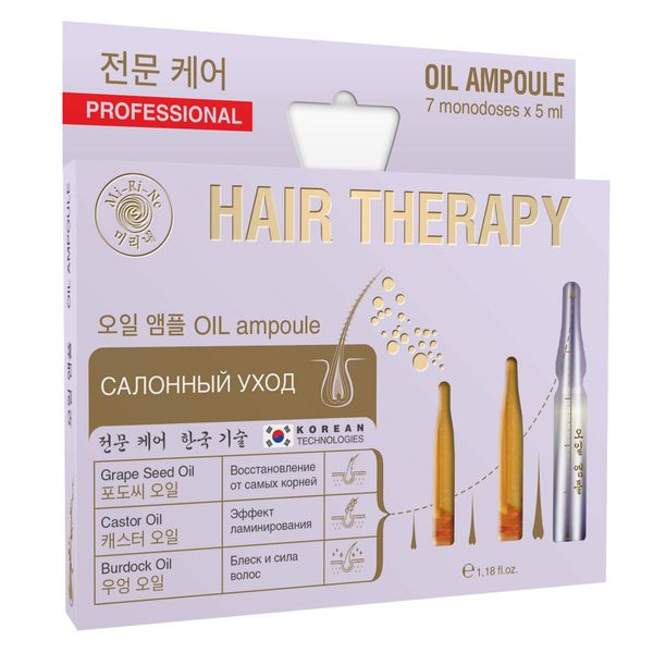 Комплекс для разглаживания и блеска волос масляный салонный уход 3 в 1 Mi-ri-ne/Ми-ри-не 5мл 7шт