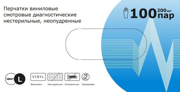 Перчатки диагностические виниловые неопудренные нестерильные 200шт (100 пар) р.L