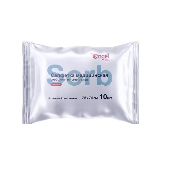 Салфетка медицинская сорбционная марлевая стерильная 8-слойная Angel 7,5см х 7,5см 10шт