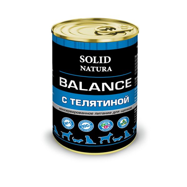 Корм влажный для щенков телятина Balance Solid Natura жестяная банка 340г