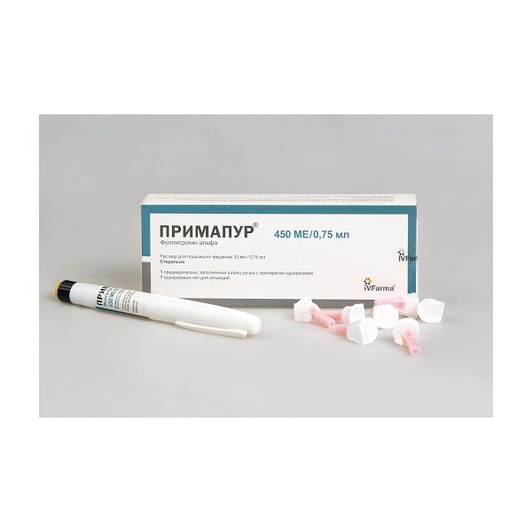 Примапур раствор для п/к введ. картридж в шприц ручке 33мкг/0,75мл 450МЕ 0,75мл+Игла одноразовая 7шт