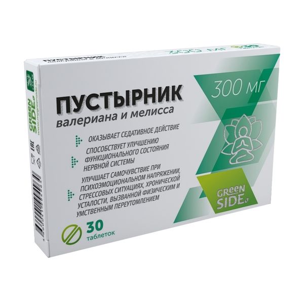 Пустырник, валериана и мелисса Green side/Грин Сайд таблетки 300мг 30шт