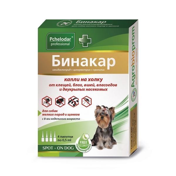 Бинакар капли на холку для мелких пород собак 0,5мл 4шт