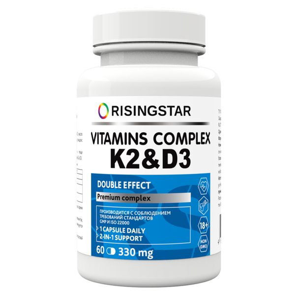Комплекс витаминов К2 и Д3 Дабл эффект Risingstar капсулы 330мг 60шт