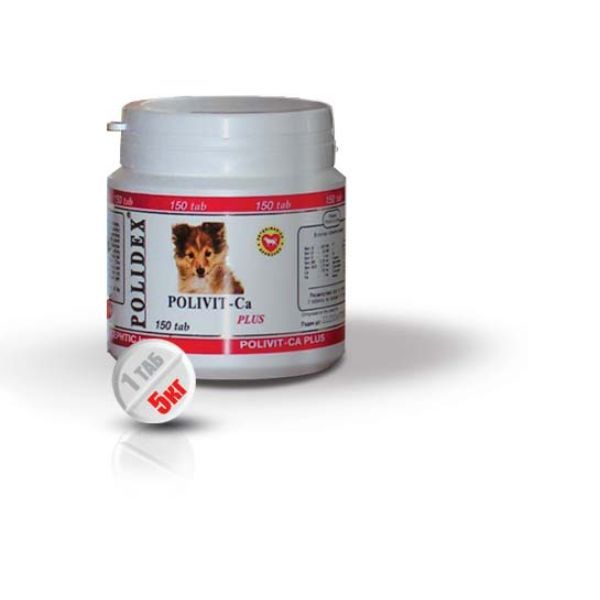 Поливит-Кальций плюс Polidex таблетки для щенков,беременных и лактирующих собак 150шт