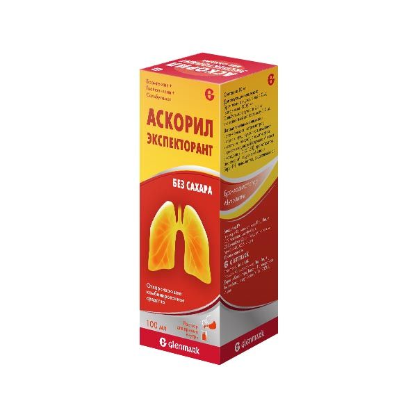 Аскорил экспекторант+мерн. колп. р-р д/вн. прим. без сахара 2мг+50мг+1мг/5мл 100мл