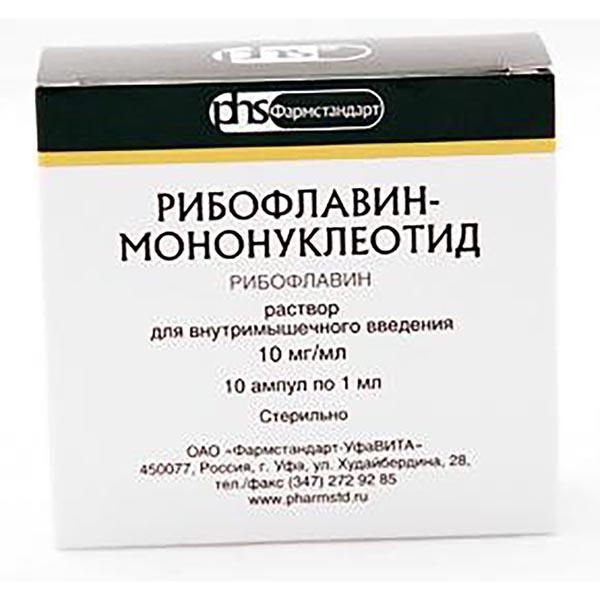 Рибофлавин-мононуклеотид раствор для в/м введ. 10мг/мл 1мл 10шт