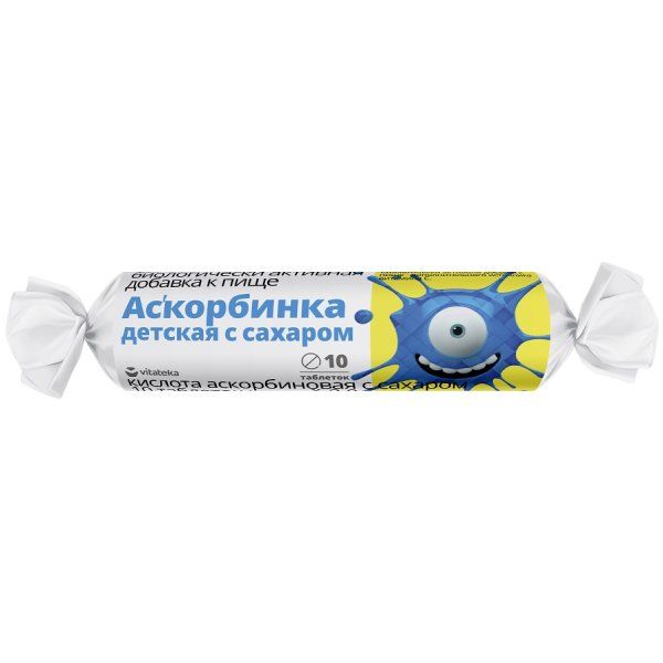 Аскорбинка детская с сахаром Vitateka/Витатека таблетки 20мг 2,9г 10шт