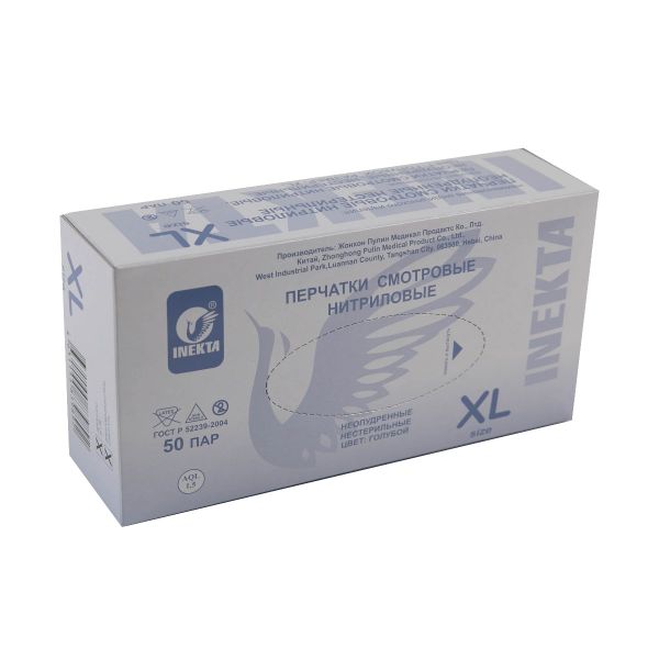 Перчатки нитриловые неопудренные текстурированные на пальцах нестерильные голубые Inekta 50 пар р.ХL