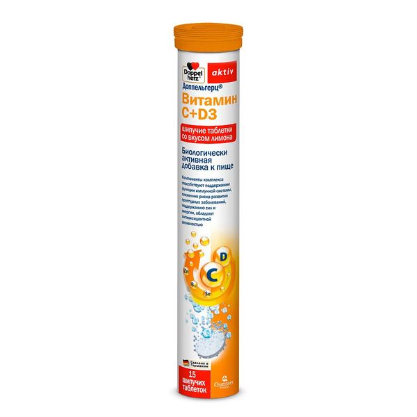 Витамин С+Д3 со вкусом лимона Doppelherz/Доппельгерц таблетки шипучие 6,3г 15шт