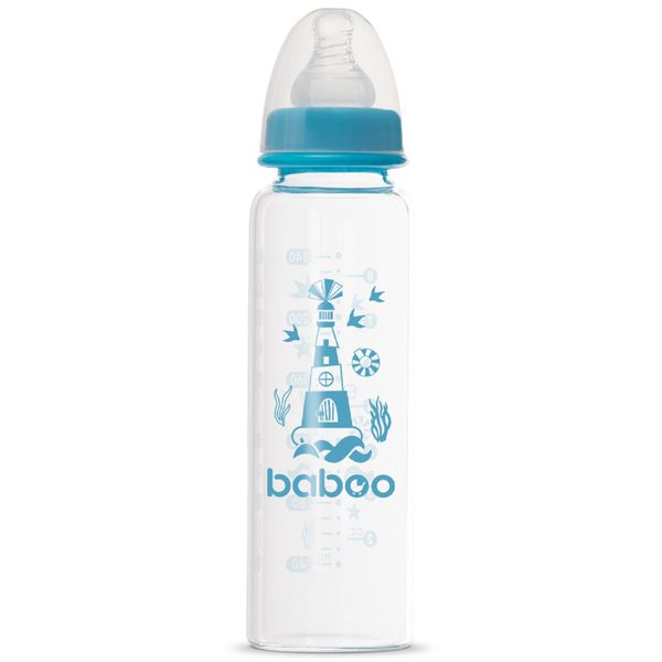 Бутылочка стеклянная с соской узкая 3 мес+ Marine Baboo 240мл