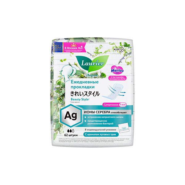 Прокладки ежеднеыне супертонкие с ионами серебра с ароматом трав Fresh Beauty style Laurier/Лориэ 62шт