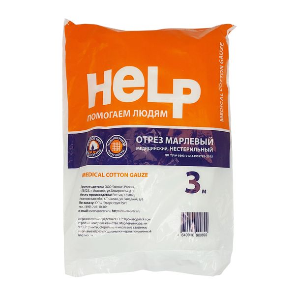 Отрез марлевый медицинский нестерильный повышенной плотности Help 90см х 3м