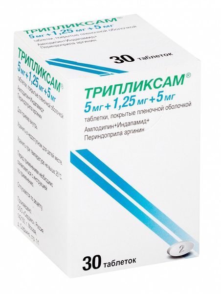 Трипликсам таблетки п/о плен. 5мг+1,25мг+5мг 30шт