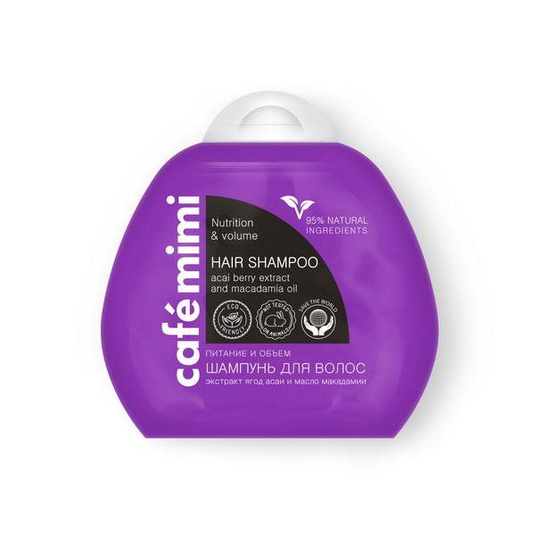 Шампунь для питание и объема волос экстракт ягод асаи и масло макадамии Cafe mimi 100мл