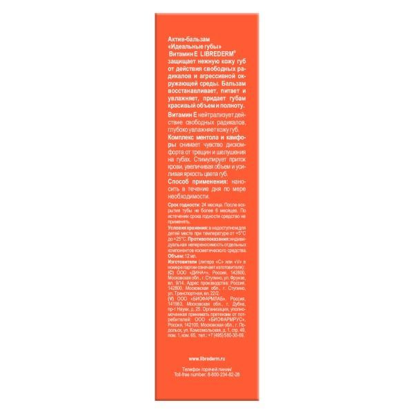 Актив-бальзам Идеальные губы Librederm/Либридерм Витамин Е 12мл