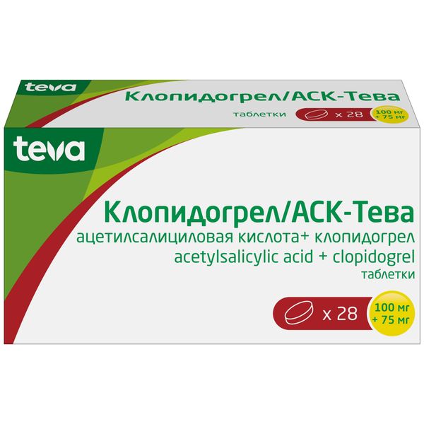 Клопидогрел/АСК-Тева таблетки 100мг+75мг 28шт