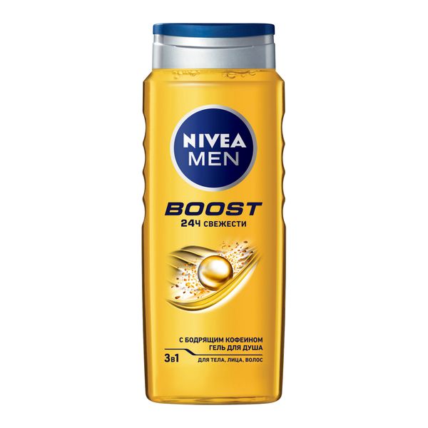 Гель для душа для тела, лица, волос с бодрящим кофеином 3 в 1 Boost Men Nivea/Нивея фл. 500мл (92847)