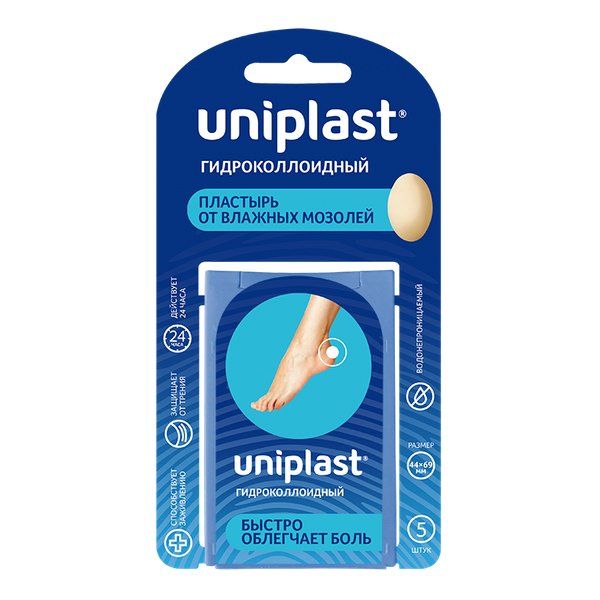 Пластырь гидроколлоидный от влажных мозолей Унипласт 4,4см х 6,9см 5 шт.