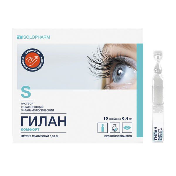 Раствор офтальмологический увлажняющий Гилан Комфорт 0,18% 0,4мл 10шт