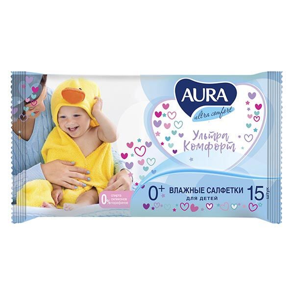 Салфетки влажные детские Ultra comfort Aura/Аура 15шт