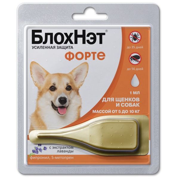 БлохНэт Форте для щенков и собак от 5 до 10кг капли на холку пипетка 1мл